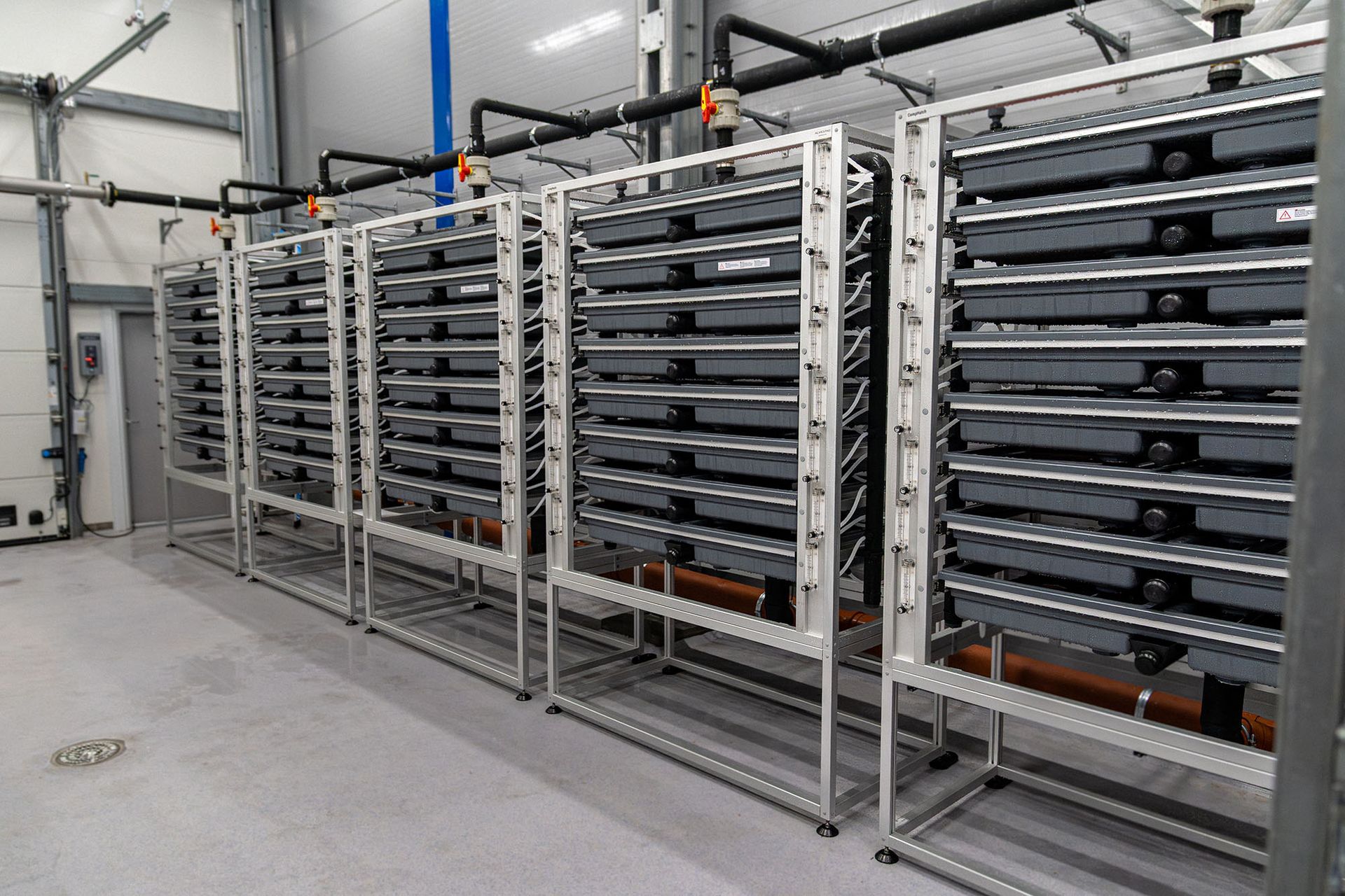 Hver klekkebrett har egen vanninntak med flowmåler som sikrer individuell og optimal vannføring. EasyHatch-substratet gir god støtte til yngelen, og sikrer stabile og sunne klekkeforhold.