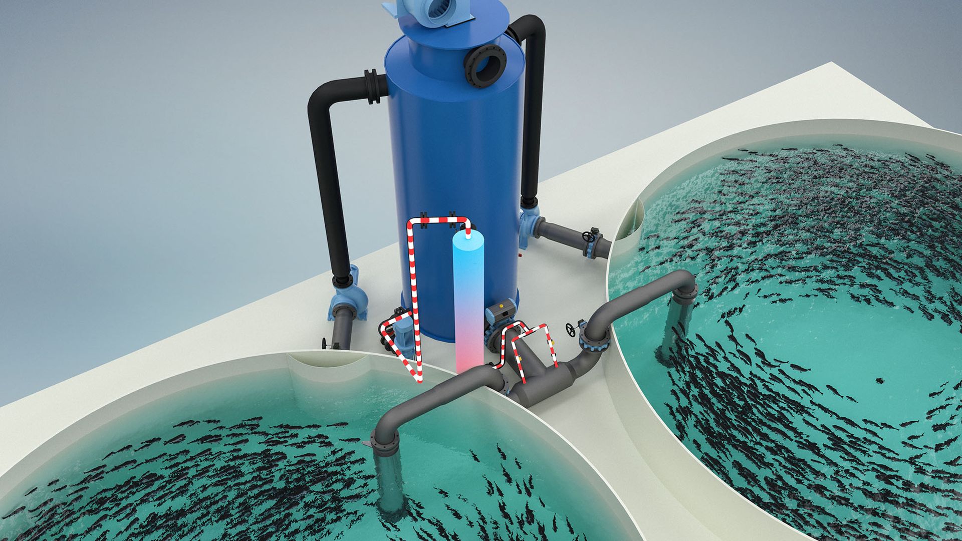 AutoOx draws water from the GasBuster unit via a high-pressure pump, adds oxygen, and returns it through precise regulation with actuated valves. The result is a stable oxygen level and optimal conditions for the fish – with minimal need for manual intervention.